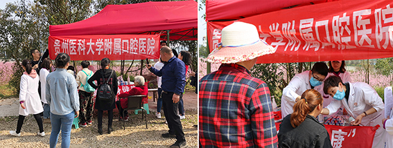 把自己所学的临床知识带到最基层,服务更广大的人民群众是一件很幸福的事,卢主任是这样想的,也是这样做的。在繁忙的临床和科研工作之余,为了更广泛地普及口腔健康知识,传播口腔健康理念,增强口腔保健意识,卢虹老师带领儿牙团队到幼儿园,社区,乡镇等多地展开过口腔卫生宣教和义诊,曾为数千名儿童和基层群众进行口腔检查,指导其口腔预防保健知识,提供专业的口腔治疗建议。3月26日上午,卢虹老师带领儿牙团队的党员干部及全体医护走进平坝区大硐村开展了口腔义诊活动。活动现场,口腔专家为前来的群众进行了口腔检查,解答各种爱牙护牙的专业问题,指导其口腔预防保健知识,针对不同情况提出口腔治疗建议,并发放了口腔健康方面的宣传资料。受检者余阿姨表示自己的牙一直不好,平时忙于做饭、带孩子,没有时间去医院检查,今天让医生看了就放心了,她说:“举行这样的活动挺好,能让老百姓多学习一些健康方面的知识。”