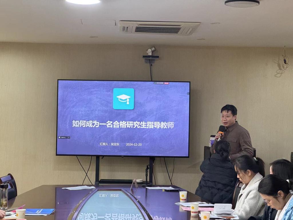 吴亚东围绕如何成为一名合格的研究生指导教师进行了分享。他强调,研究生选拔应着重考量综合素质,并在培养过程中及时跟进和讨论员工的学术及临床技能培养情况,为员工提供积极的指导意见。