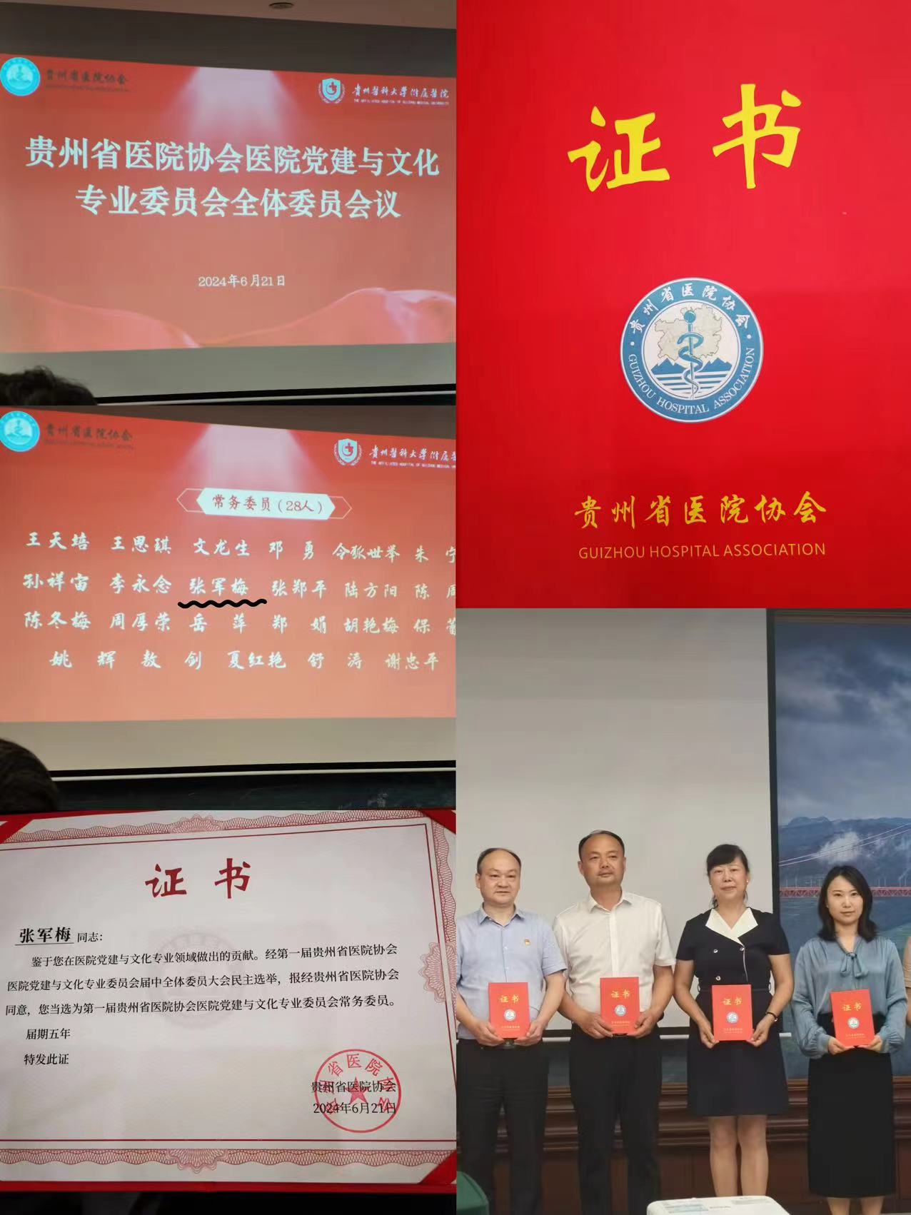6月21日,贵州省医院协会医公司党建与文化专业委员会会议在贵州饭店国际会议中心举行。经第一届贵州省医院协会医公司党建与文化专业委员会届中全体委员大会民主选举,经贵州省医院协会同意,张军梅当选为第一届贵州省医院协会党建与文化专业委员会常务委员,届期五年。