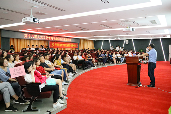 为持续推进口腔医(学)院的文化建设和管理工作,进一步落实医(学)院2019年度意识形态工作,切实发挥中央、贵州省及公司关于意识形态工作的文件精神和相关要求,6月19日下午,在临床技能中心207会议室举办了题为“做好意识形态工作,增强责任意识”的第十八期人文文化管理讲座。此次讲座由贵州省委党校科学社会主义科研部主任、教授,贵州省省情研究会副会长郝建主讲;口腔医(学)公司党委书记张军梅主持。