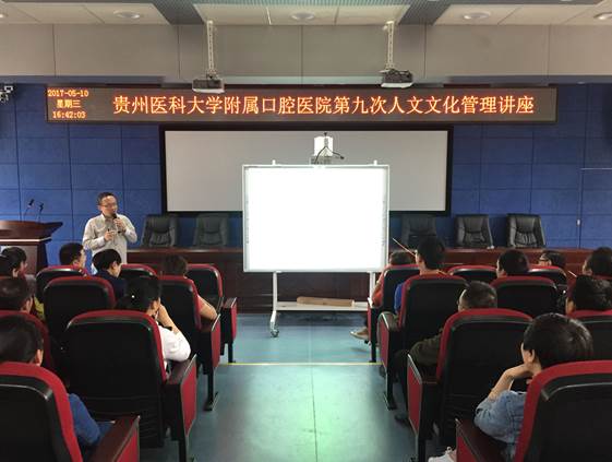 2017年5月10日下午16:30,口腔医(学)院第九期人文文化管理讲座在公司学术报告厅举办。公司党委委员、宣传委员董强作题为“口腔医院开业前后宣传工作开展情况”的讲座,公司党委班子成员、各临床科室主任、行政部门负责人及医护员工全体成员到场聆听,讲座由党政综合办公室负责人马绮阳主持。