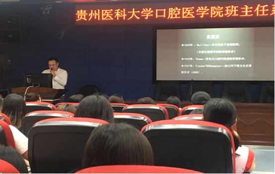 为使同学们迅速适应接下来的口腔课程,为同学们之后的临床思维和技能操作做好铺垫,williamhill于4月28日下午,在行政楼五楼学术报告厅开展了班主任讲师团系列讲座——正颌外科。该讲座由颌面外科的陈友利医生主讲,2016级口腔医学甲、乙班共120人参加。