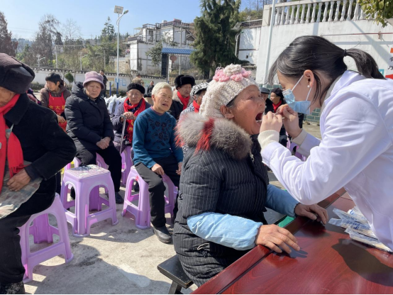 1月30日,在新春佳节来临之际,公司携手贵州省励志公益发展中心走进毕节市织金县官寨乡白马敬老院,开展“青春志愿•爱在口腔”系列活动之“岁回律转辞旧岁 天寒情深暖人心”义诊帮扶活动。民盟贵州省委关爱教育支部主委、贵州省励志公益发展中心秘书长周巧明,公司党委副书记何雨羲、团委委员段姗姗、研究生包明雳参加此次活动。