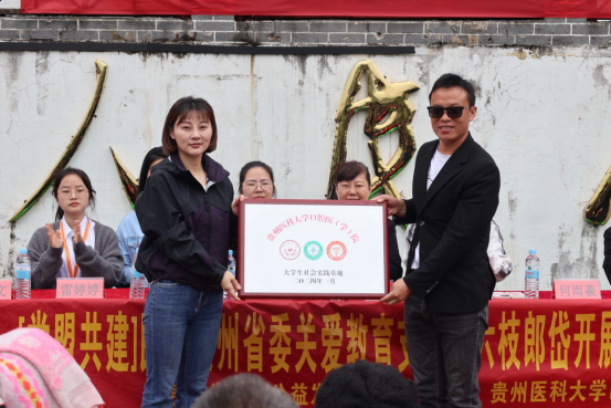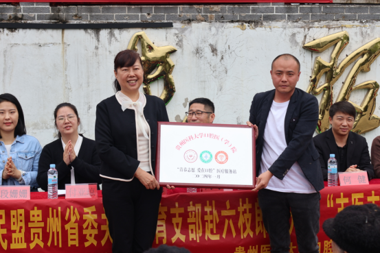 上午11时,在郎岱镇青菜塘村举行授牌仪式。张军梅、何雨羲分别授予青菜塘村“青春志愿 爱在口腔”医疗服务站、williamhill老员工社会实践基地牌匾。