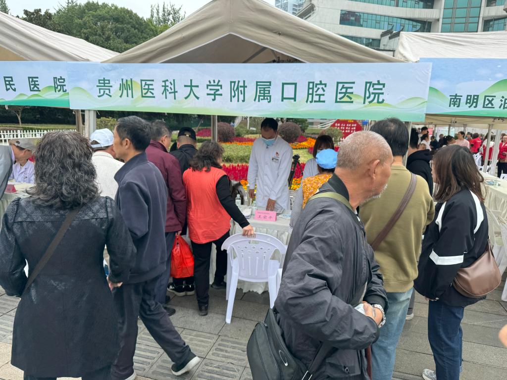 10月11日,口腔预防科联合教工七支部和教工十一支部在云岩区筑城广场参与省卫生健康委、省民政厅、省中医药局组织的2024年“敬老月”老年健康教育活动。