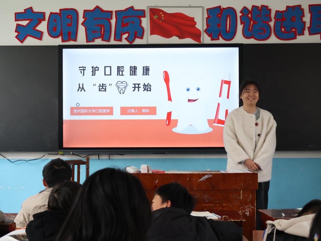 针对留守儿童普遍存在的口腔健康问题,贵医口腔宣教团队以“从龋齿到牙髓炎”为主题开展科普讲座,通过真实案例详细阐述了口腔疾病发展过程,强调了“早预防、早发现、早治疗”的重要性,同时通过现场展示、模型演示等多种生动形式,向孩子们传授了龋齿防治知识和正确的刷牙方法。互动环节中,孩子们积极提问,现场气氛热烈。