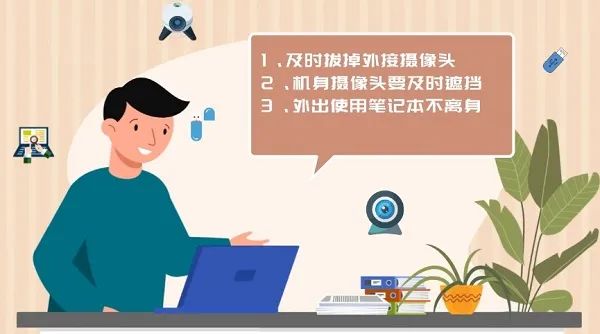 首先,是硬件层面的防护。如果办公电脑采用了外接的摄像头,在不使用的时请及时拔掉摄像头插口;如果是内置的摄像头,在不使用的时候请打开摄像头物理拨片,或者盖住摄像头。黑客也可以通过电脑的接口进行病毒植入,在户外使用笔记本时,建议笔记本不离身。