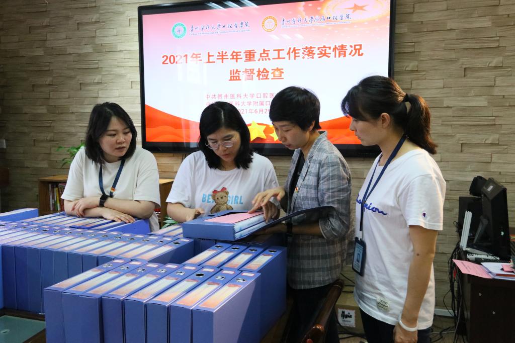 会后,检查组现场查阅了口腔医(学)院2021年上半年重点工作落实情况相关材料。双方在过程中交流工作成效,对党建工作需大胆探索、专抓实干、攻坚克难等方面取得共识,并表示日后会进一步加强沟通,促进各项工作开展更扎实、更高效。