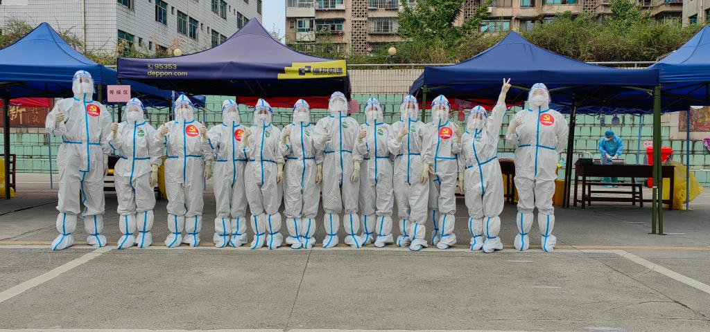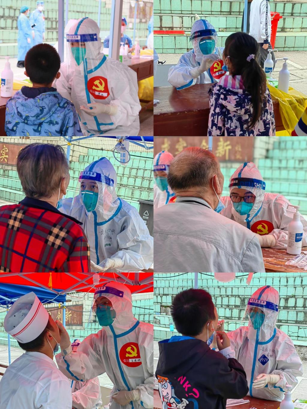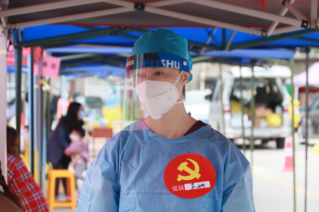 现场医务人员表示:“我们之中大多人是党员,要时刻不忘自己是一名党员,要用实际行动践行党员的初心使命,积极主动发挥党员的先锋模范带头作用,展现医务人员担当作为,让党旗高高飘扬在抗疫一线”。