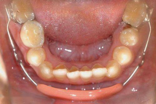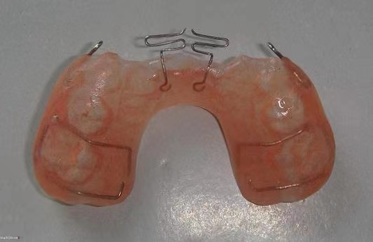 矫治方法:前牙深覆合深覆盖的患儿常常伴有吮指,咬下唇,口呼吸等不良习惯,同样,应首先纠正其不良习惯,必要时可在其手指上涂抹苦瓜汁或是辅助矫治装置如唇挡丝、前庭盾等。同时早期可进行肌功能训练,如上唇肌张力训练。口呼吸习惯应进行耳鼻喉科会诊处理,检查其是否伴有鼻咽部疾病,排除鼻咽部疾病后,再使用前庭盾、闭口贴等纠正。针对功能性的因素,常用的矫治器为肌激动器,TB、FRⅡ。针对骨性的因素,常用的矫治器为头帽-肌激动器。
