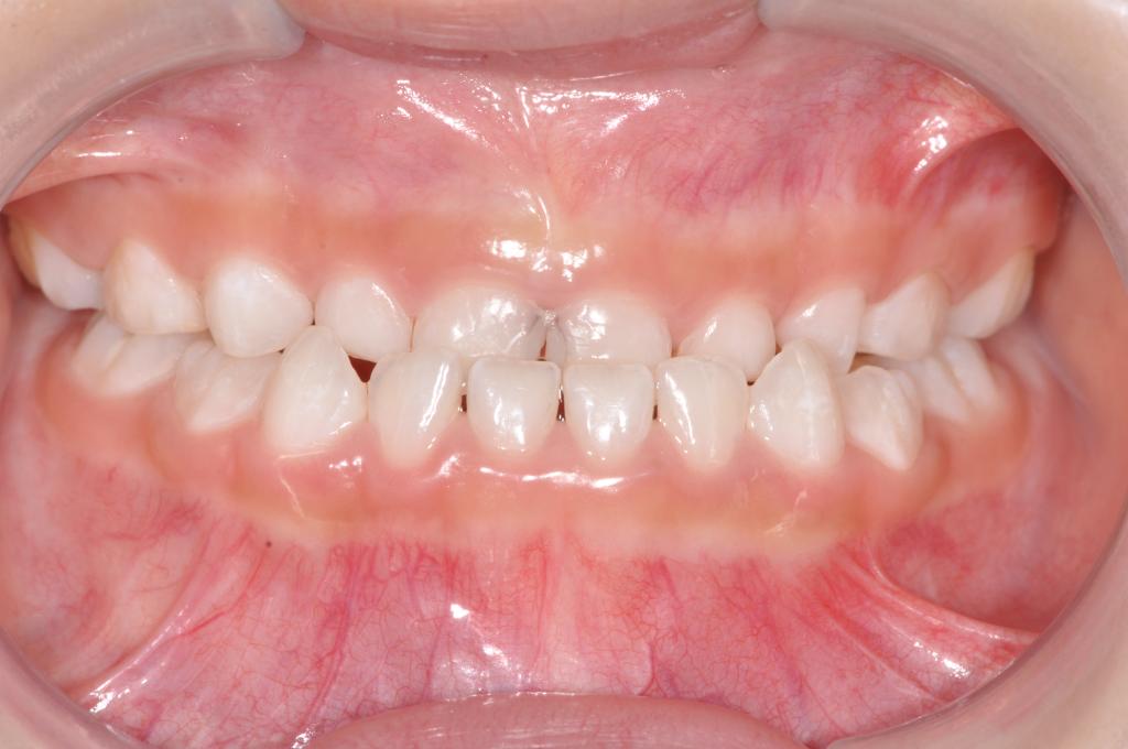 前牙反合,俗称“地包天”,是指上下颌牙齿咬合时,下颌前牙咬在上颌前牙的外面。前牙反合随着患者的生长,症状会逐渐加重,往往造成上颌骨发育不足、下颌骨发育过度,表现为凹面型,对患者的美观、功能及心理健康均带来了极大的不良影响。乳牙列时期的前牙反合一般在3-5岁左右进行。混合牙列的前牙反合一般在8-9岁左右。