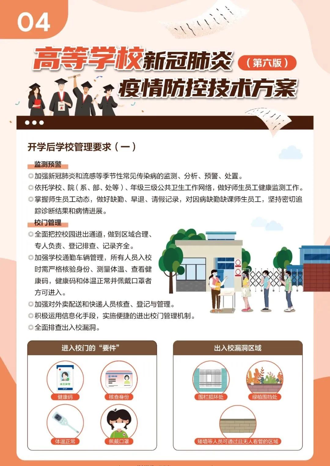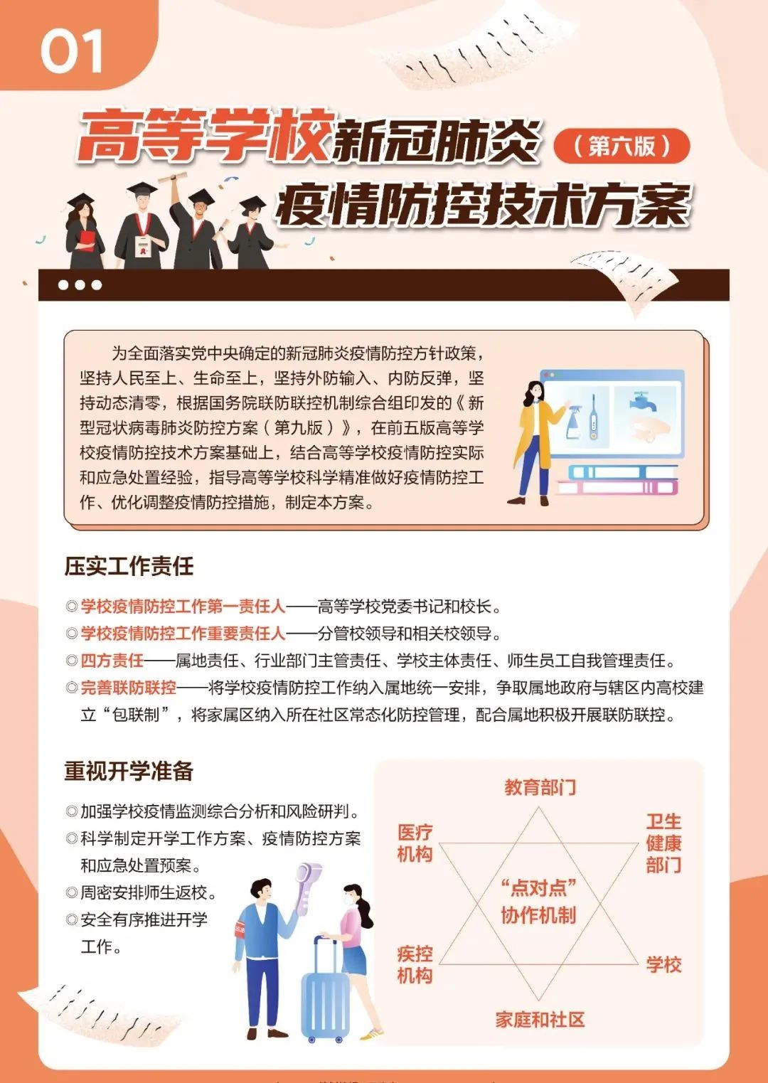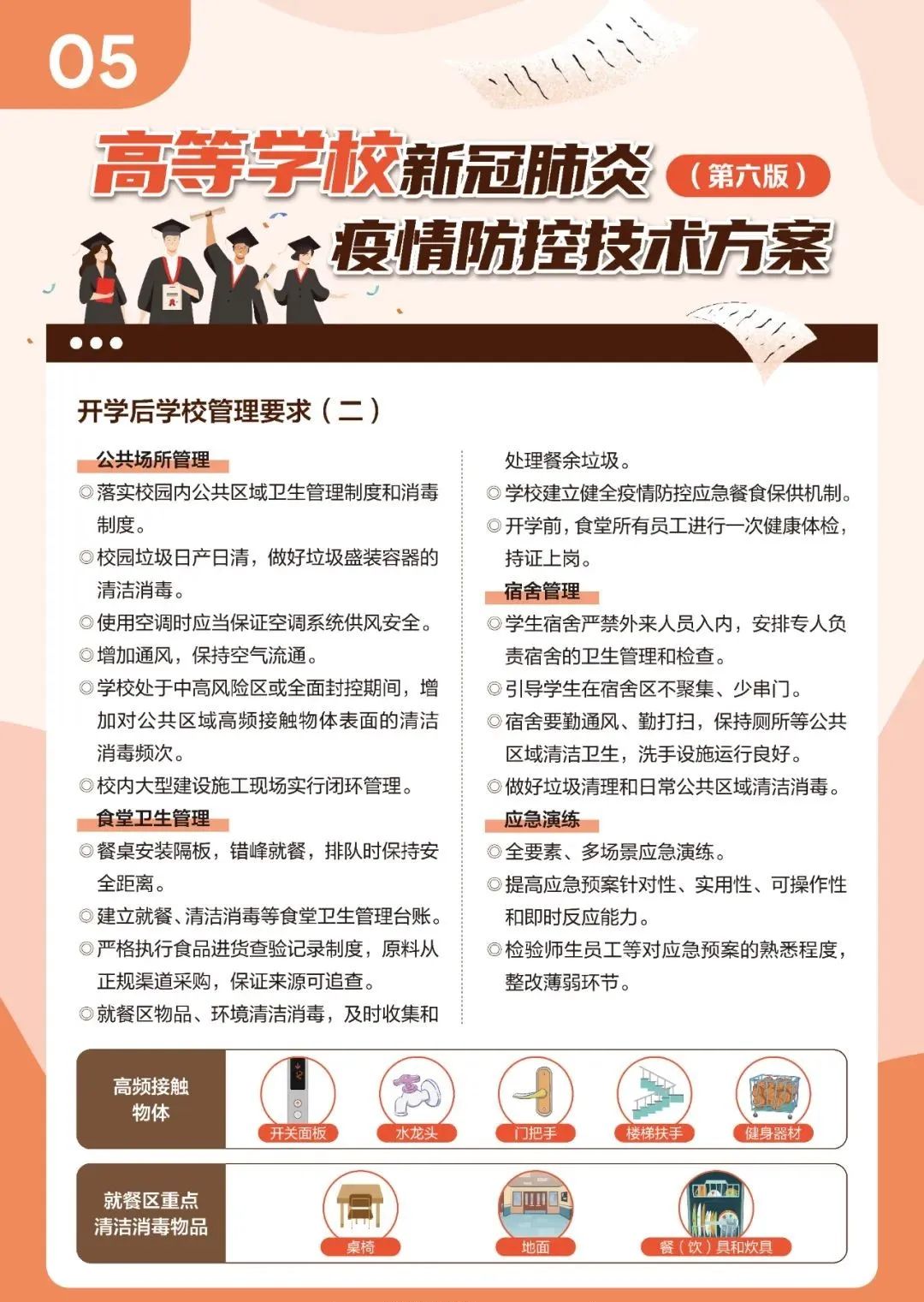 近日,教育部、国家疾控局组织制定了《高等公司新冠肺炎疫情防控技术方案(第六版)》,以进一步指导高等公司做好新冠肺炎疫情防控工作,压实校园防控各方主体责任,有序落实常态化防控与应急处置措施。新版技术方案重点都有哪些些要求?一起来看!