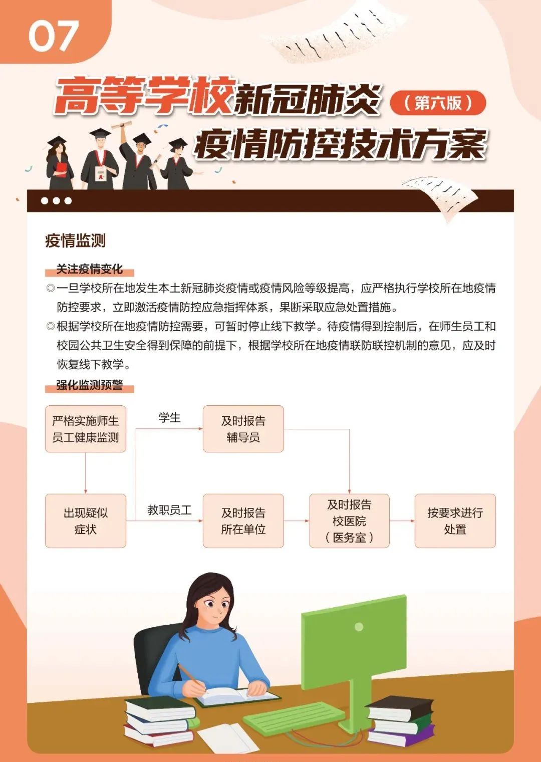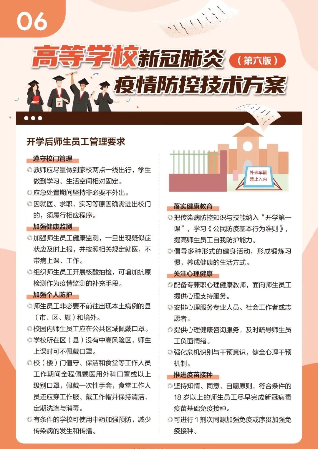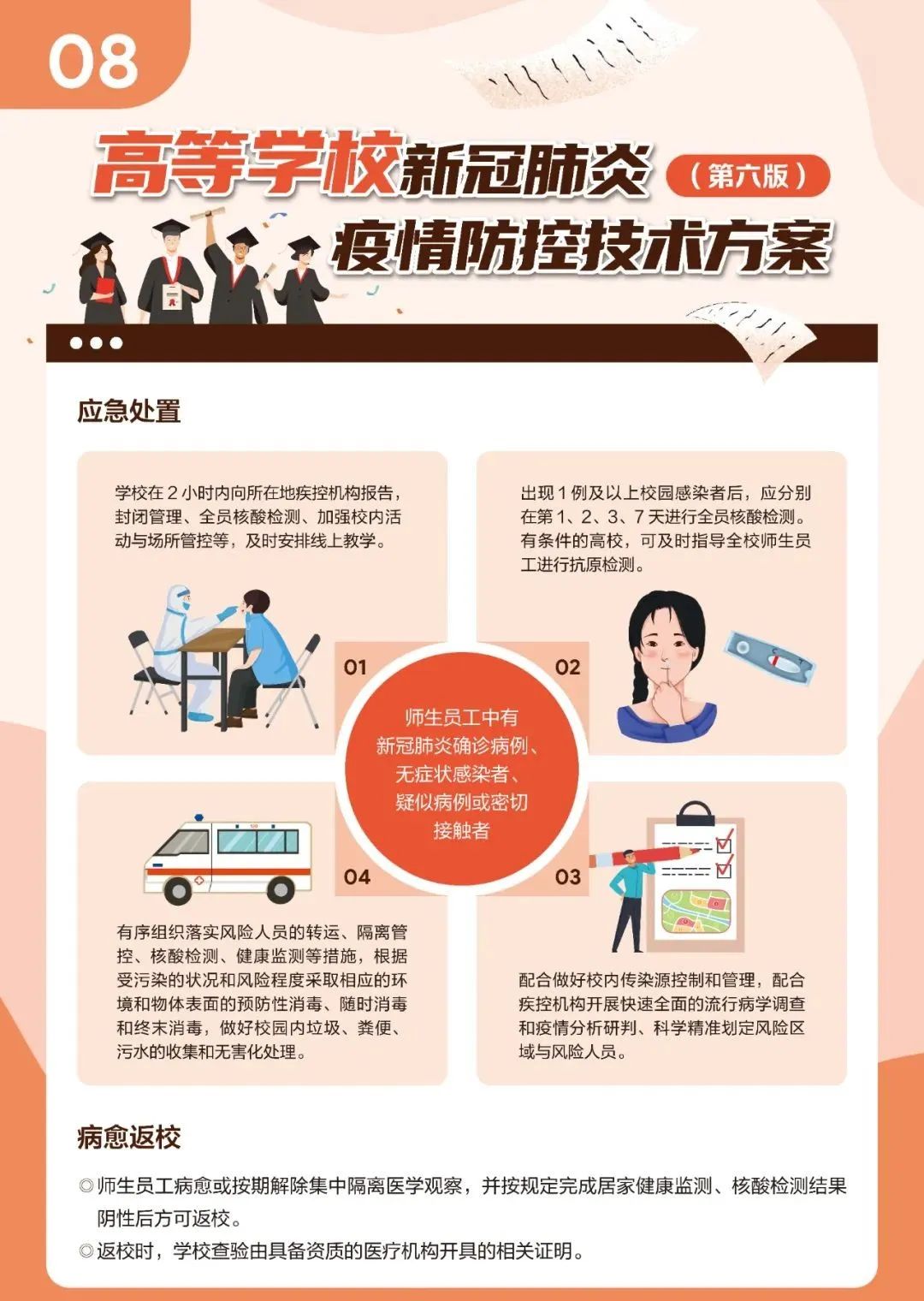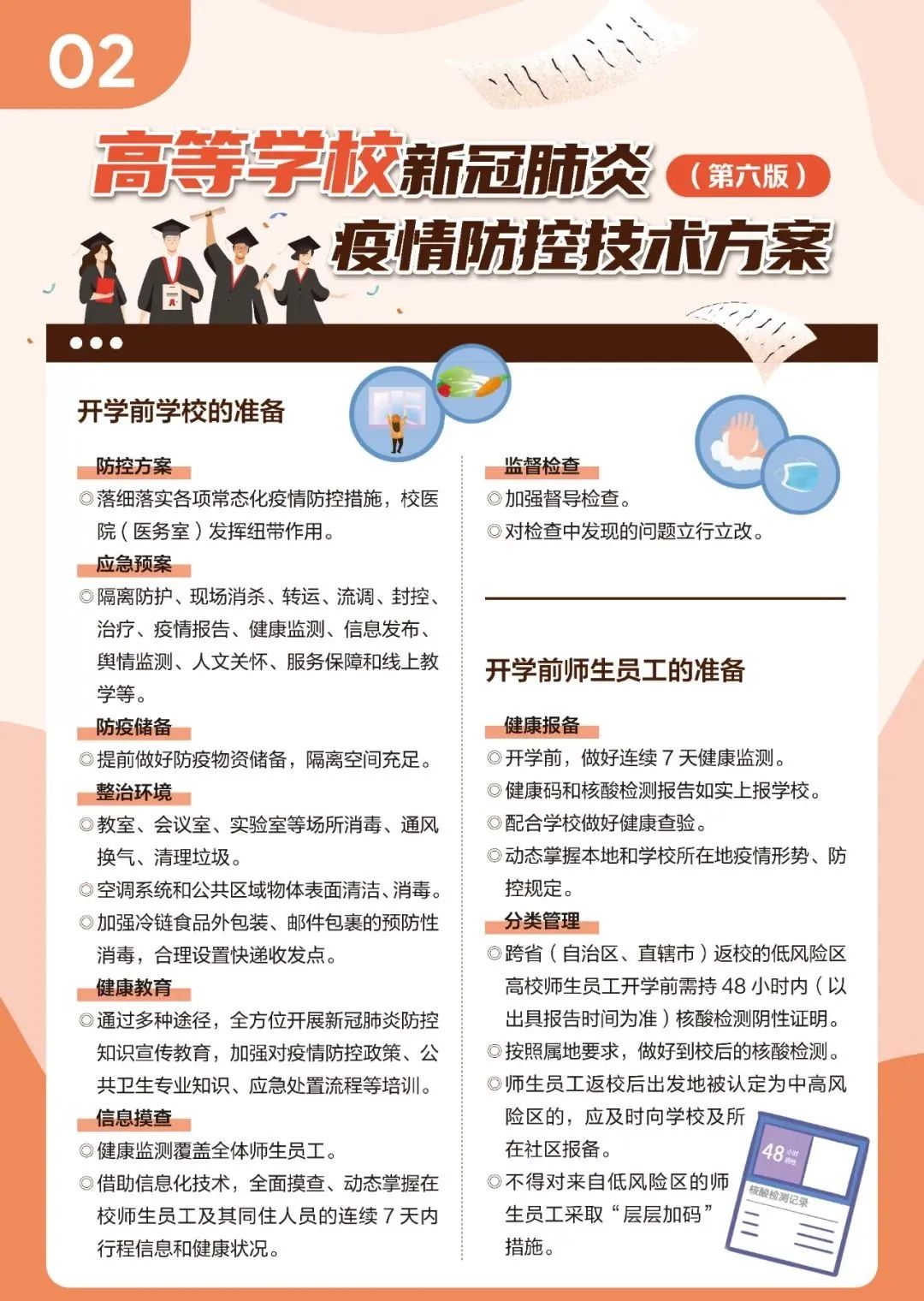 近日,教育部、国家疾控局组织制定了《高等公司新冠肺炎疫情防控技术方案(第六版)》,以进一步指导高等公司做好新冠肺炎疫情防控工作,压实校园防控各方主体责任,有序落实常态化防控与应急处置措施。新版技术方案重点都有哪些些要求?一起来看!