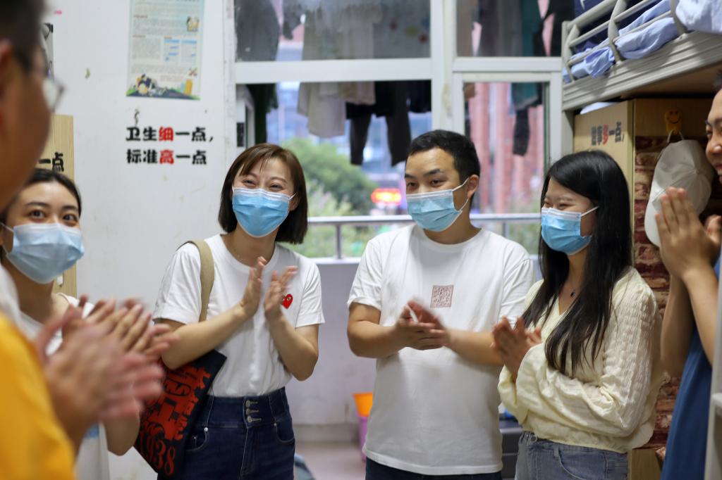 恰逢中秋与教师双节来临党委副书记何雨羲带领新校区抗疫教师团委副书记刘逸洲辅导员汪继蓉医院感染管理科负责人陈锐科员杨亚一起走进新校区员工寝室为中秋留校的同学们送上最美好的祝福也代表口公司党政为同学们送上口院心意,彰显口院精神。