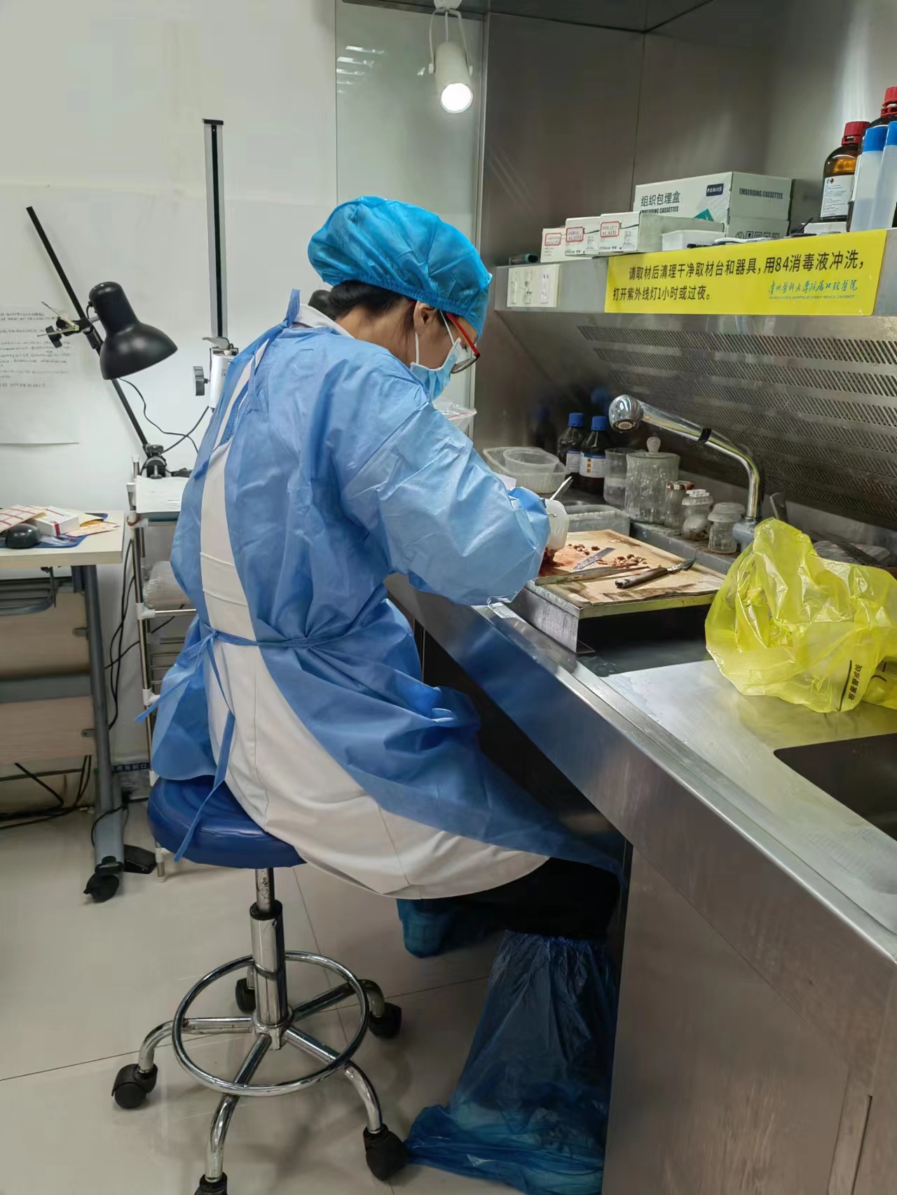 病理科当班医生及时进行标本取材,以便进行病理切片的及时制作,确保病理结果的及时报送。