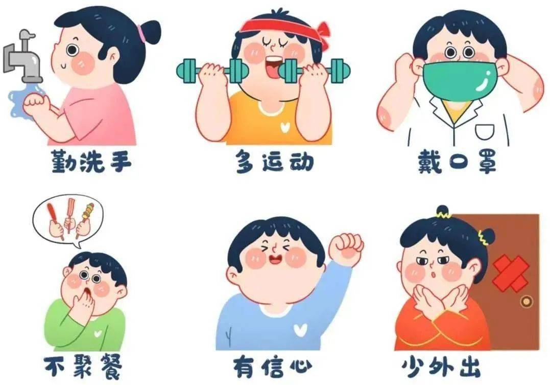 保持良好生活习惯。勤洗手、常通风、戴口罩、保持“一米线”社交距离。注意合理膳食,保持乐观心态,保证充足睡眠,适量体育锻炼,提高免疫力,预防呼吸道传染病。