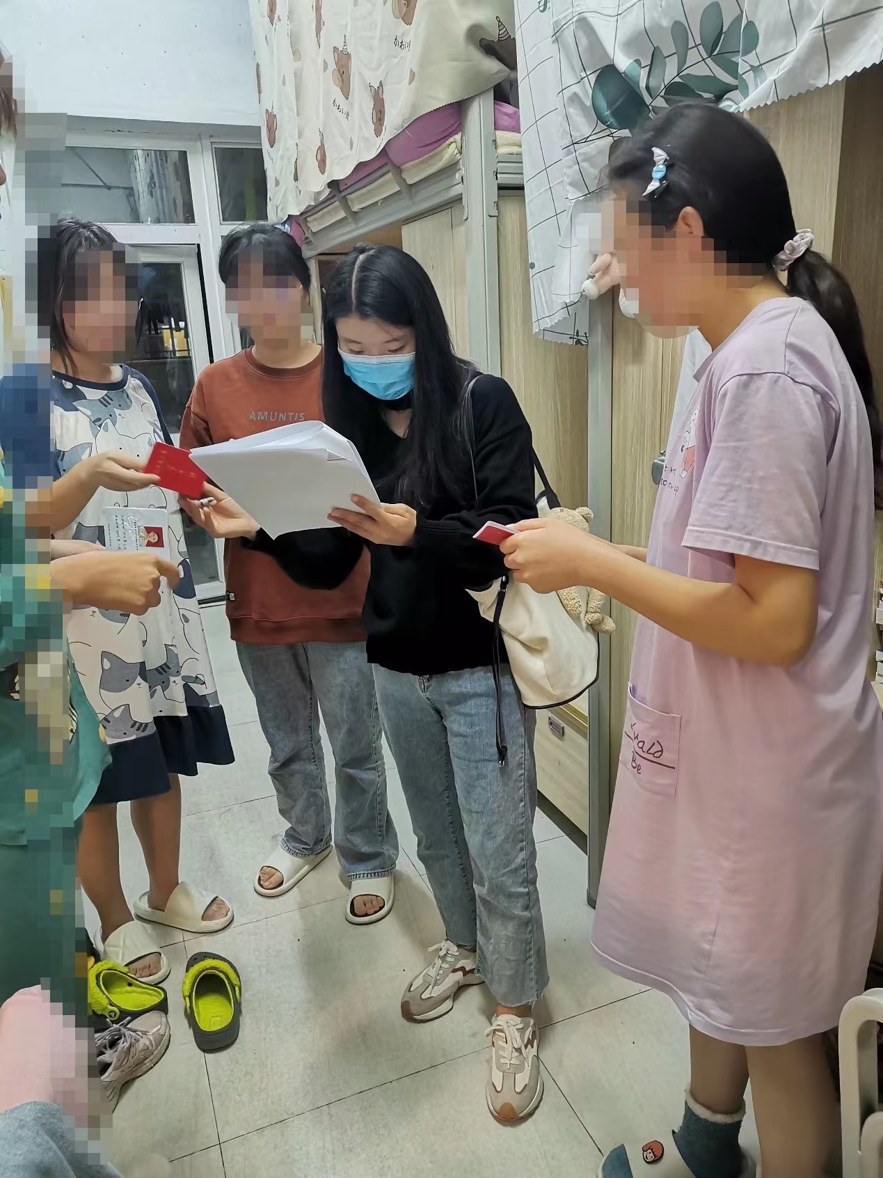 他们是贴心家长,每晚工作结束,他们来到同学们的宿舍里,了解同学们的日常生活,关心他们的学习状态、生活起居和心理状态,将硬核抗疫与温馨防疫相结合。