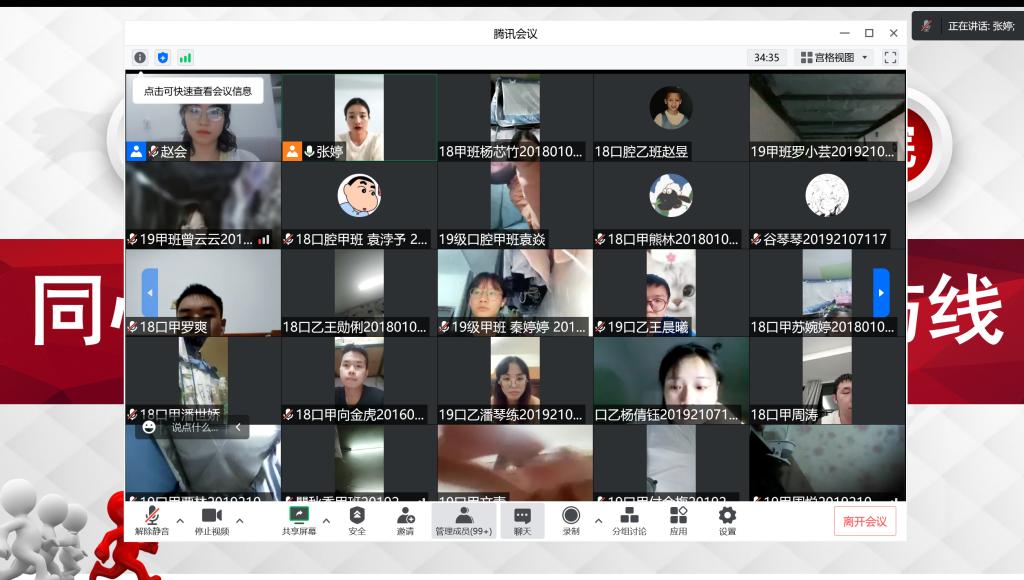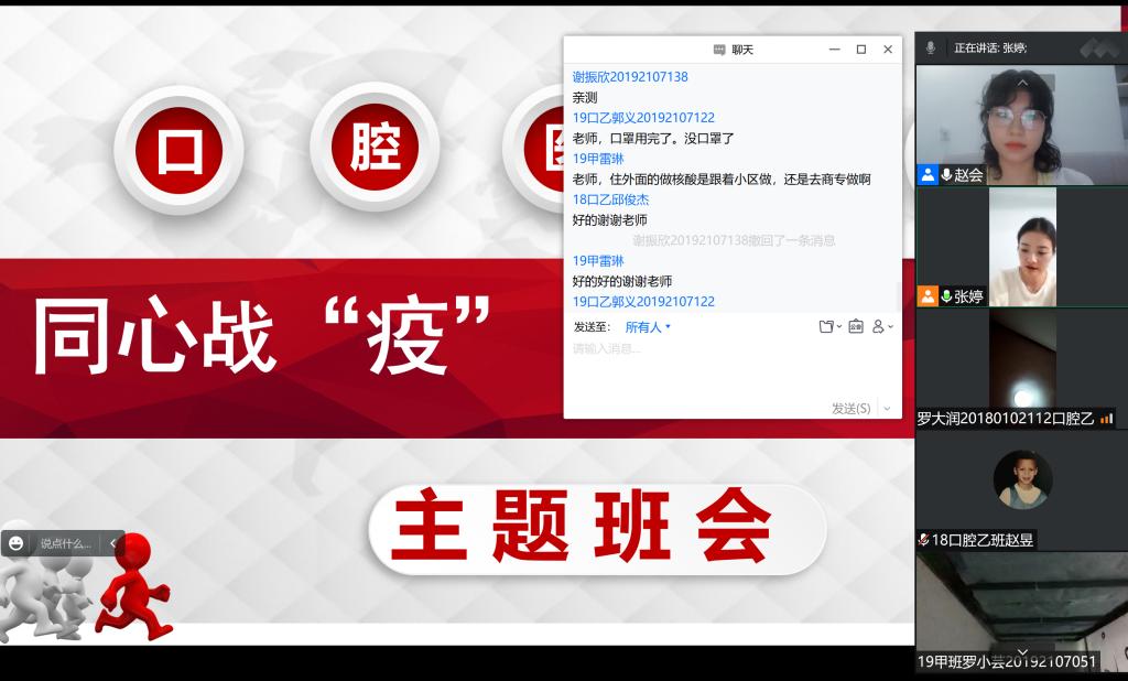 何雨羲在会议最后总结讲话,指出此次省内疫情爆发突然,具有传染人数多、范围广等特点强调“抗击疫情,人人有责”,同学们作为医员工更应带头遵守疫情防控规定,支持公司工作,及时填报信息,自觉自律,为战疫贡献力量。同时呼吁同学们在封控期间要始终保持积极乐观的心态,若有需要可向公司心理咨询中心寻求帮助。