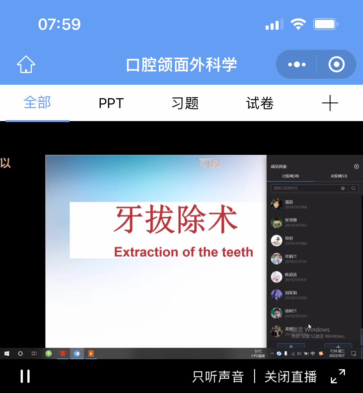 公司本学期承担2019级口腔医学专业185名本科生教学任务,涉及4个教研室共计8门专业课程。前期,公司教学管理科提前发放教学平台使用操作手册,点对点联系教研室、授课教师及员工,确保线上课程有序进行。同时,每日填报《线上教学情况登记表》,每周填写《线上授课情况统计表(周报)》上报教务处相关部门。95日,全院师生通过雨课堂、腾讯会议平台,按照课表开展线上教学活动,线上教学已顺利开展并完成理论课9次,实验课1次。教师们化身“主播”,学子们有序“上线”,公司领导高度重视疫情期间线上教学工作进展情况,与教研室主任、教管科根据数据后台、随堂听课等方式对线上课堂进行巡视督察及时处理线上教学出现的新情况新问题,保障教学质量线上线下同质等效。
