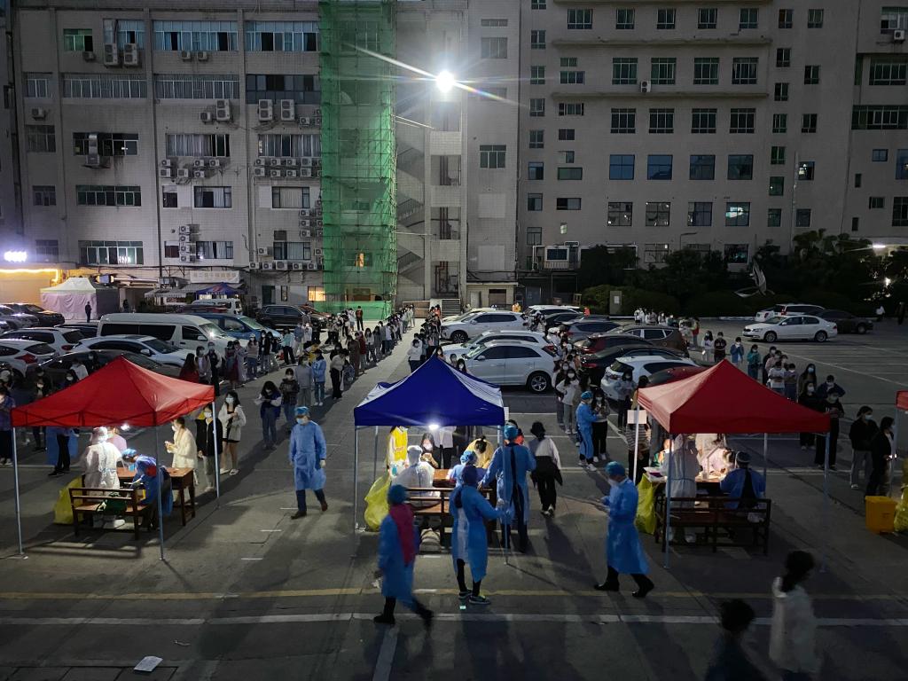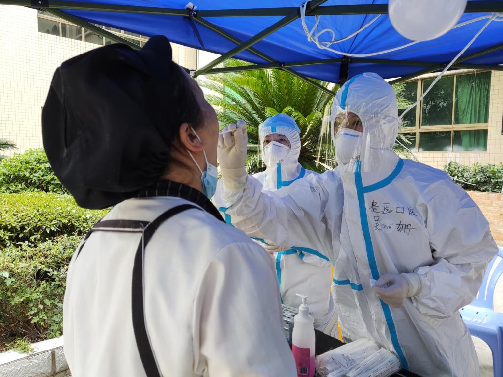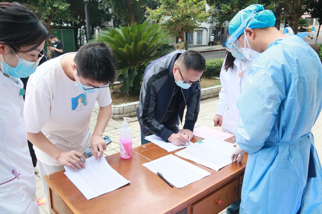 核酸检测点上,核酸采样队全副武装,纷纷化身“大白”“大蓝”,坚定奋战在抗疫一线,扫码登记、配发试剂管、维护秩序、核酸采样……他们用奉献和奋斗诠释医者担当,用实际行动守护家园安全,以身作则,点滴汇聚战疫的燎原之力。截至傍晚,工作任务顺利完成,共计完成核酸采样3200余人次,其中黄码人员12人次。
