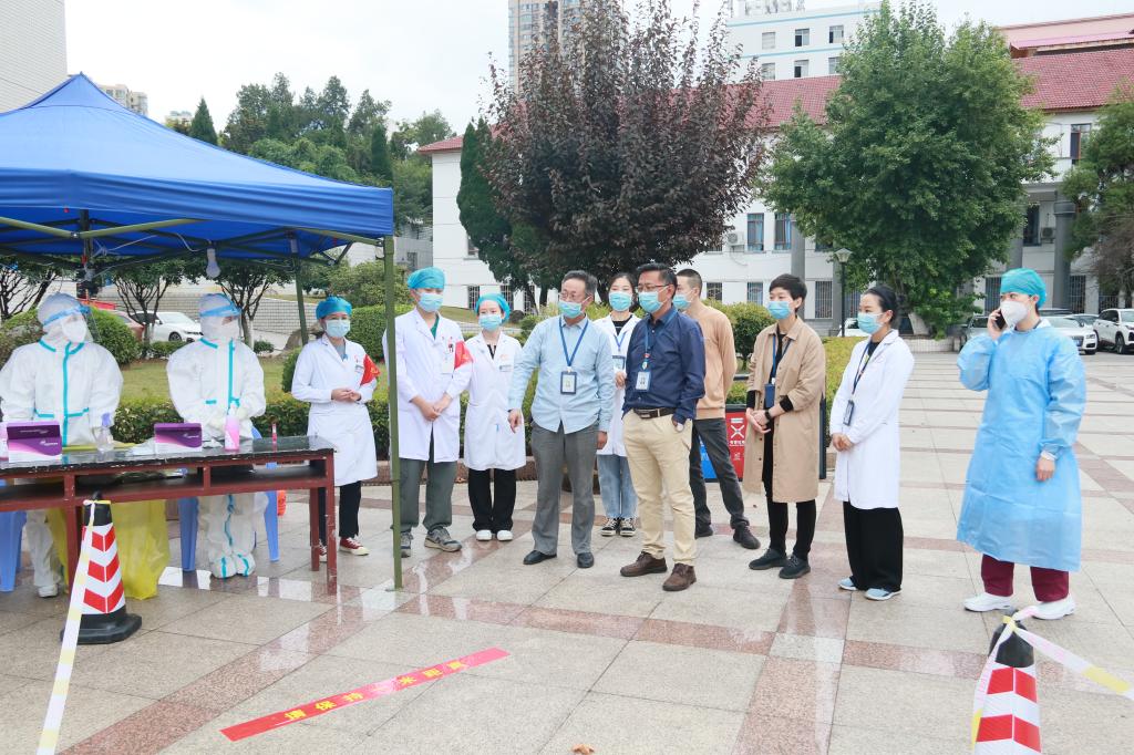 突遇疫情“大考”,我们都是答卷人。特殊时期,医院来往人员复杂,疫情防控难度大,为切实保障医护患健康安全,公司党政领导带领党员干部及志愿者深入医院,到预检分诊、门诊导诊、病房、医院固定核酸检测点、北校区临时核酸检测点等地,巡视检查疫情防控、物资储备等情况。期间,院领导对默默付出的院感、后勤、团委、宣传等职能部门同志表示感谢,希望各方进一步抓紧抓实抓细基础性工作,严格按照省市区有关要求,认真贯彻落实各项方案措施,坚决打好打赢这场疫情防控攻坚战!