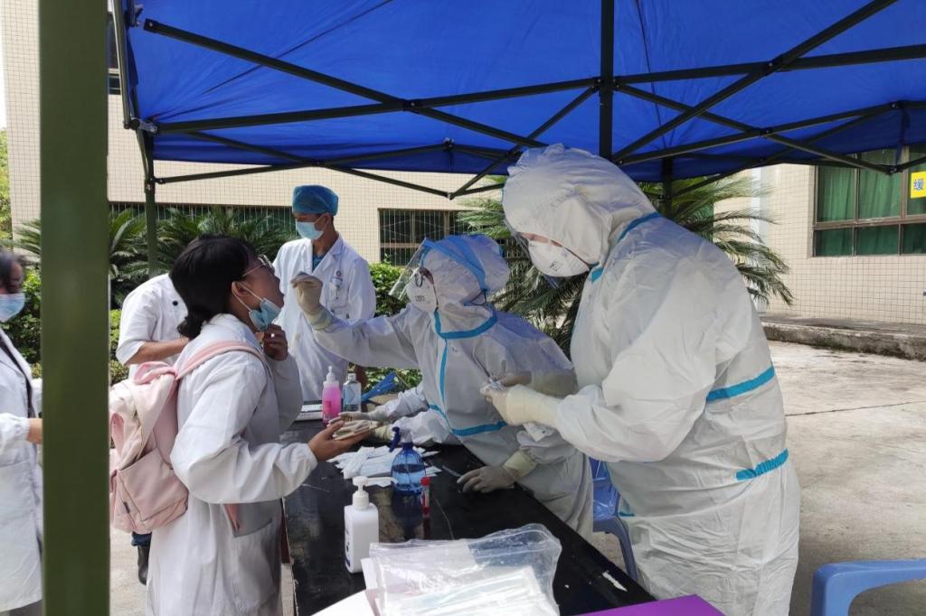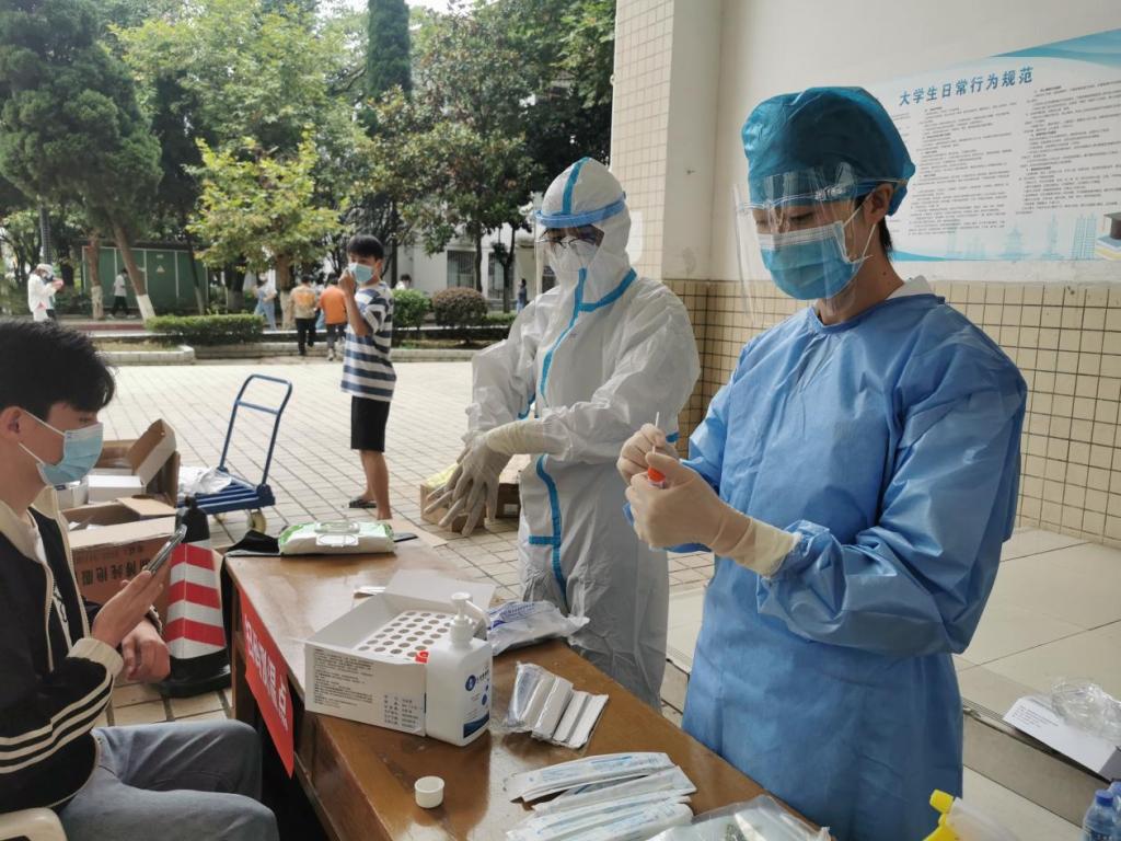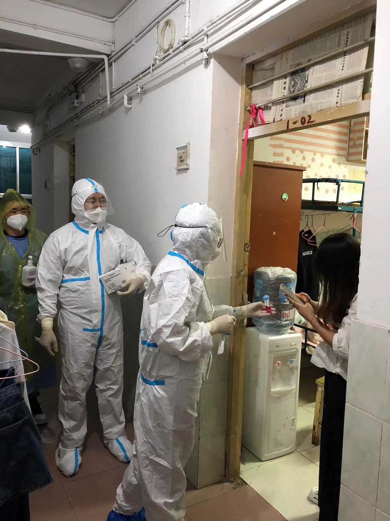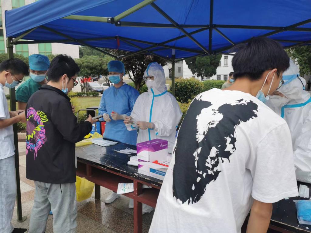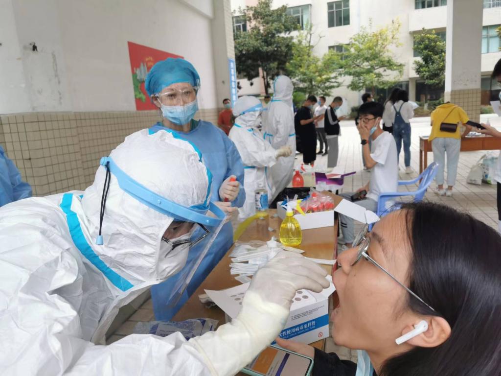 按照公司防疫部署,目前健康码为黄码的同学被隔离在指定地点,无法完成个人核酸采集,由护理部副主任吴姗带领移动核酸采集小分队前往隔离寝室为黄码同学们进行核酸采集,截止至9月3日19:40分,共计完成核酸采样3000余人次,其中黄码人员15人次。