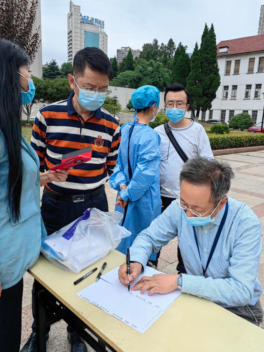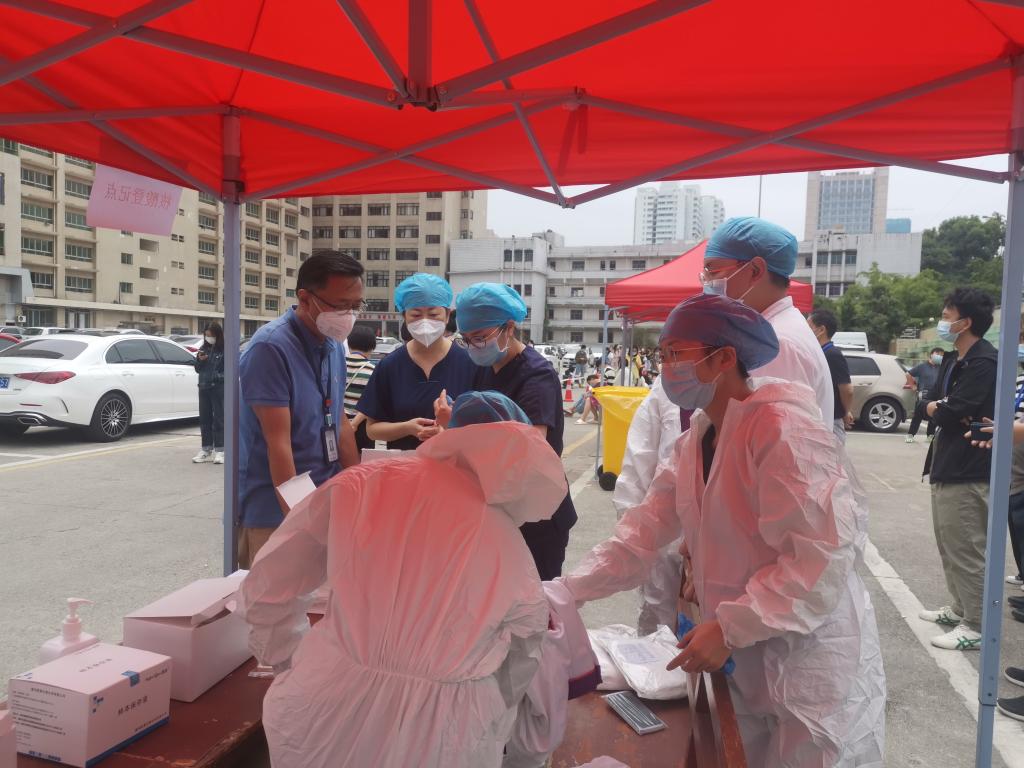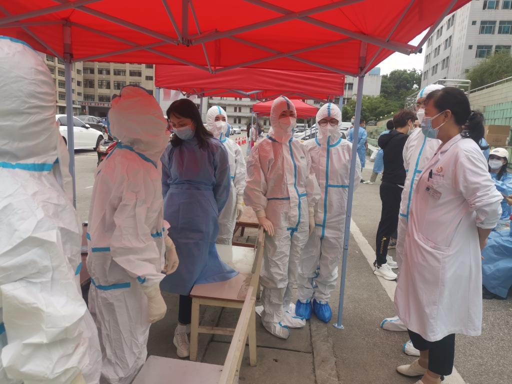 公司党委书记张军梅,党委副书记、经理马洪,副经理王永在工作现场,为核酸采样队加油鼓励,并强调要听从指挥,团结协作,把安全放在第一位,零感染完成工作任务。期间,全院各部门协同配合,快速准备好核酸采集所需物资,保障工作任务安全有序进行。