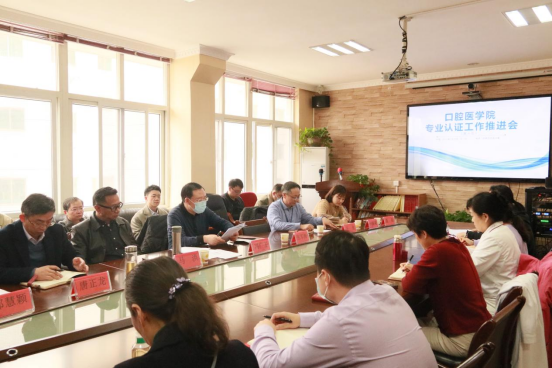 冯广卫对会前进行的专业认证教学资料校内专家模拟检查结果作了详实反馈,表示口腔医学专业认证是公司2023年19项重点工作之一,要以专业认证为契机,做好以评促建、促改、促强工作,让口腔医学专业高质量通过认证,并结合具体任务提出工作要求:一是对口腔专业认证准备工作的标准再提高。坚持问题导向,根据专业特点、办学特色,结合公司实际,对标对表高质量准备迎检材料。二是重点工作上要再严再实。加强对新教材新教法研究能力的培养,认真梳理认证期间的教学安排;根据认证工作要求确定接待方案,责任到人,层层压实。三是提高站位,强化担当,以高度的责任感做好专家进校前的各项准备工作。全院上下要切实增强紧迫感、责任感和使命感,力争展现出作为高校直属附属医院应该具备的精彩的公司产品能力、出彩的科学研究能力、精湛的医疗技术和高尚的师德师风。