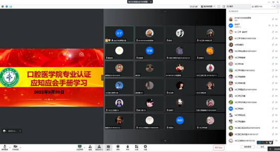 为落实公司、公司关于口腔医学专业认证工作的安排部署,进一步推进专业认证工作,让同学们充分了解专业认证内容,建设良好学风,为本次认证做足准备,8月23日至30日,口腔医公司组织各班开展了“口腔医学专业认证应知应会”培训。此次培训由各班辅导员主持,全体在校生参加培训。