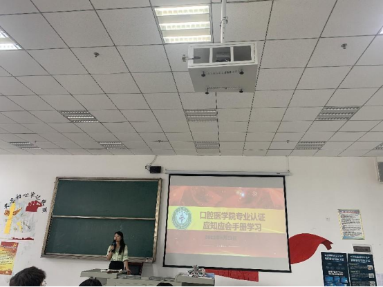各班辅导员带领员工认真学习“口腔医学专业认证应知应会学习手册”,强调要牢记“以评促建,以评促改,以评促管,评建并重,重在内涵”的指导方针。呼吁同学们作为贵医口院的一份子,一定要关注并熟知集团、公司概况,了解口腔医学专业的专业目标、学科情况、办学理念、教育方针、所学专业的定位及未来就业方向等内容,对本专业有一个充分且全面的认识与了解,为本次专业认证工作贡献自己的力量。