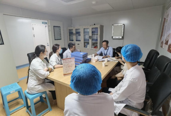 首先巡查组参观了各基地诊疗区,了解基地现有硬件设施情况,王永抽查了员工书写的门诊病历并即时提出整改意见。而后通过座谈,各基地负责人简要介绍了基地建设情况、员工实习情况及教师带教等生产实习相关情况,并对整体员工生产实习情况进行交流沟通,听取基地师生意见。之后,胡睿对同质化教学书面资料进行检查和反馈,针对各基地同质化教学管理目前存在问题提出意见建议。